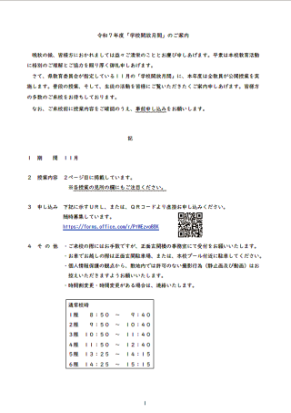 | 学校開放月間が始まります! | ||||||||||||||||||||||